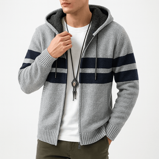 LUXEOUTFIT | Fleece-Lined Striped Zip Hoodie